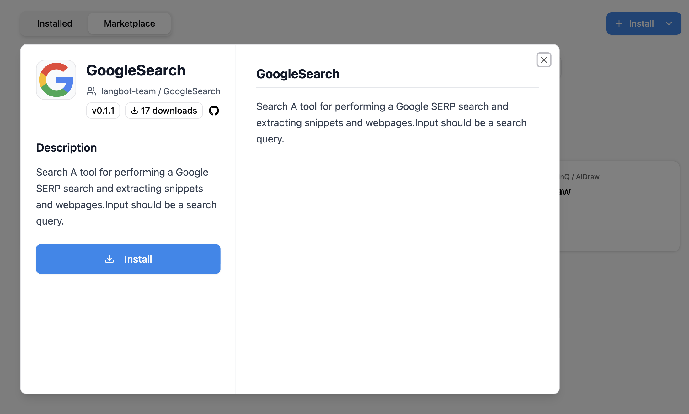 プラグインマーケットプレイスには、LangBotの内部プラグイン管理ページからアクセスするか、スタンドアロンサイトLangBotプラグインマーケットプレイスにアクセスできます。