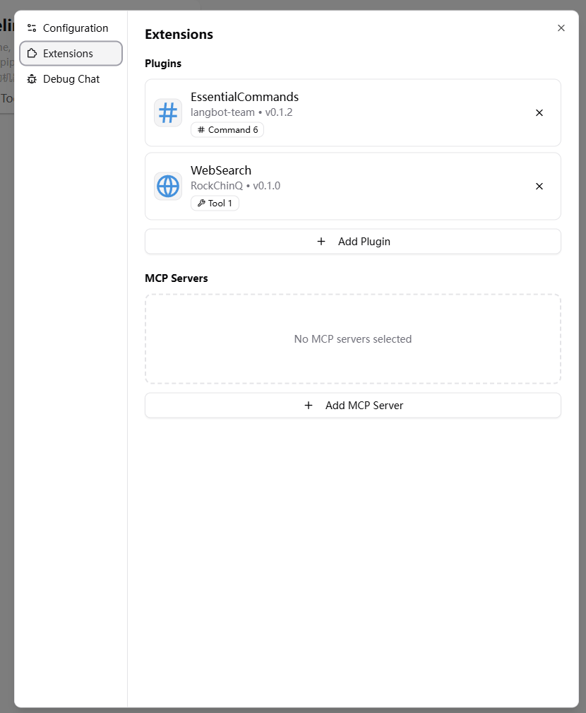 !(または他の設定されたプレフィックス)で始まるユーザーコマンドメッセージによってトリガーされます。 - ツール: LangBotの組み込みLocal Agentの実行中にLLMによって呼び出されます。
