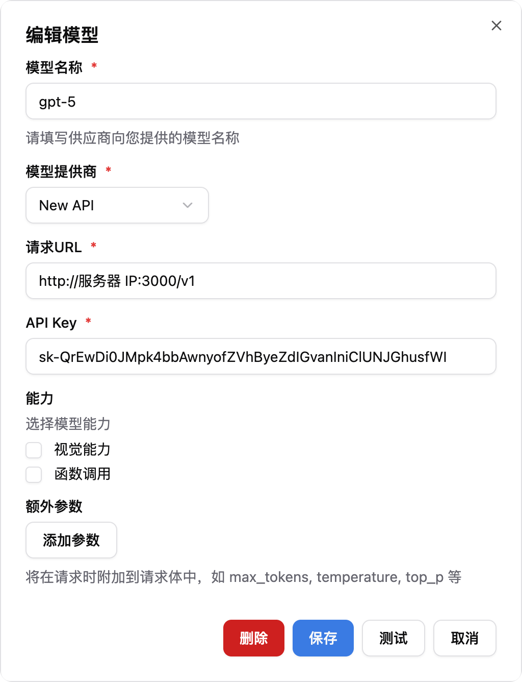 - 模型名称:输入 New API 中配置的模型名称